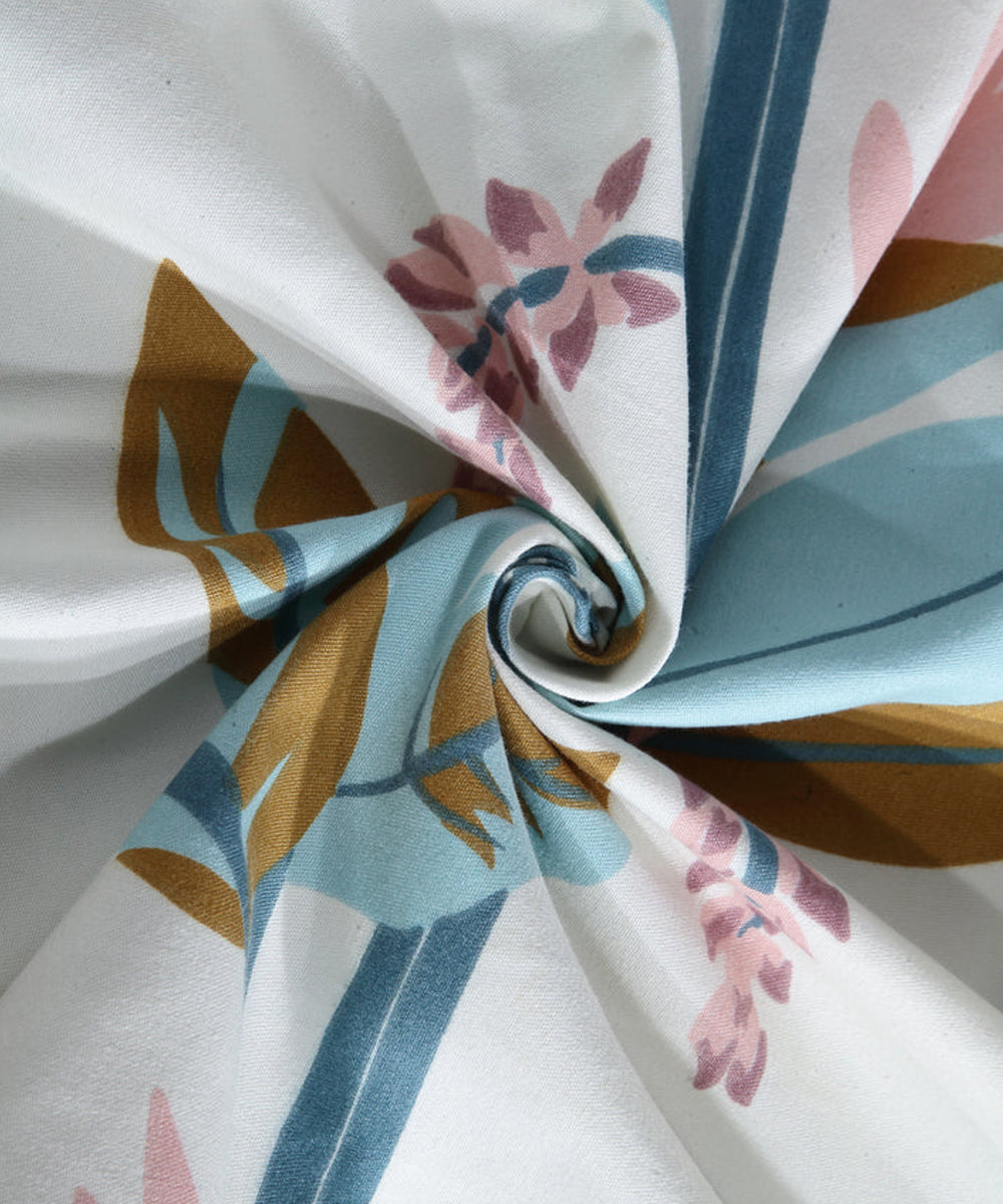 Green and Beige Floral King Fitted Bedsheet With 2 Pillow Covers