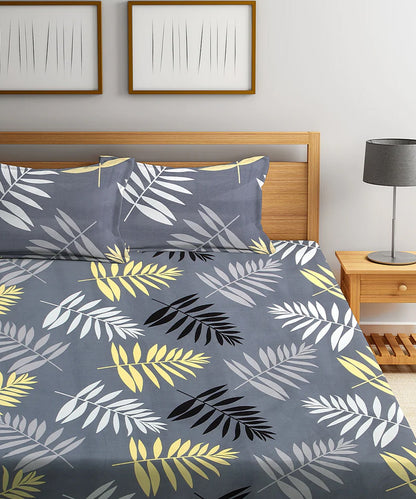 Grey Floral King Fitted Bedsheet With 2 Pillow Covers