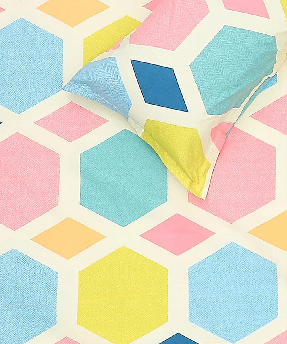Hexa Geometric Fitted Bedsheet With Pillow Cover