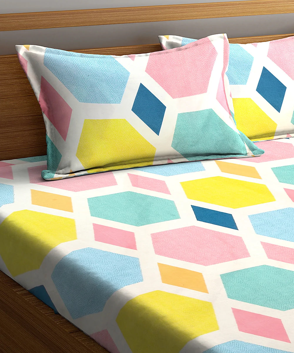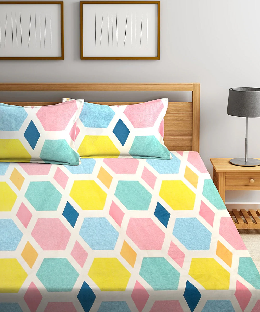 Hexa Geometric King Fitted Bedsheet With 2 Pillow Covers