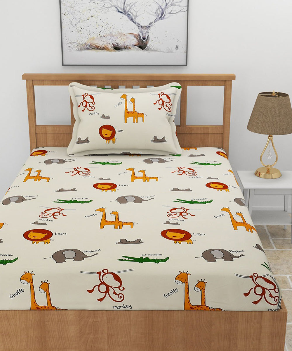 Jungle Safari Adventure Kids Single Bedsheet With 1 Pillow Cover
