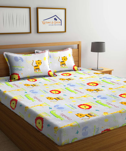Jungle Safari Kids Flat Double Bedsheet with 2 Pillow Covers