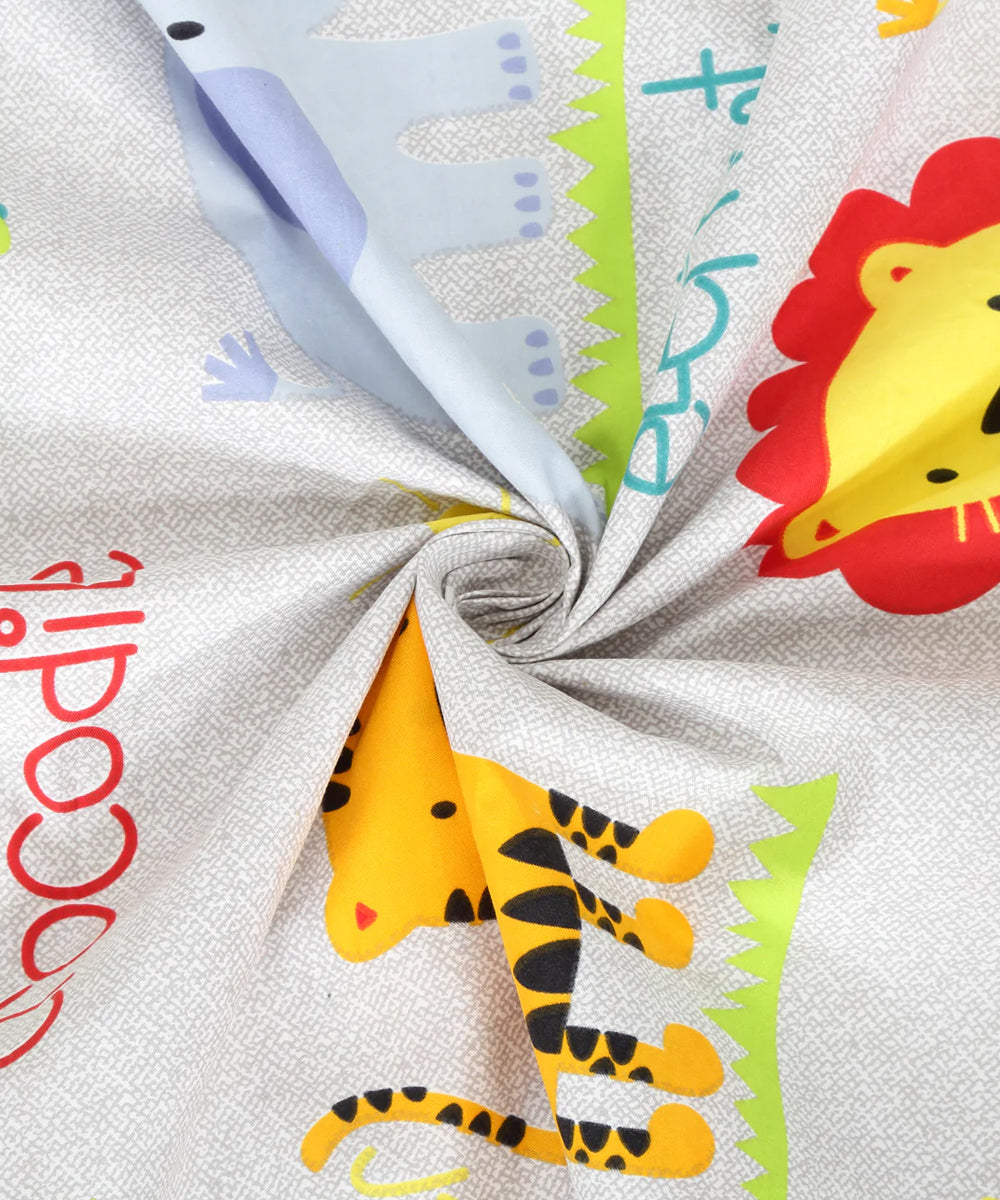Pounce through joy with Weave and Decor’s Jungle Safari Kids bedsheets, packed with a tiger, lion, elephant, and crocodile on a silly adventure! A playful crocodile snaps with a tall elephant, a roaring lion, and a sneaky tiger across bright cartoon designs, making every nap a wild, jungle-tastic journey.