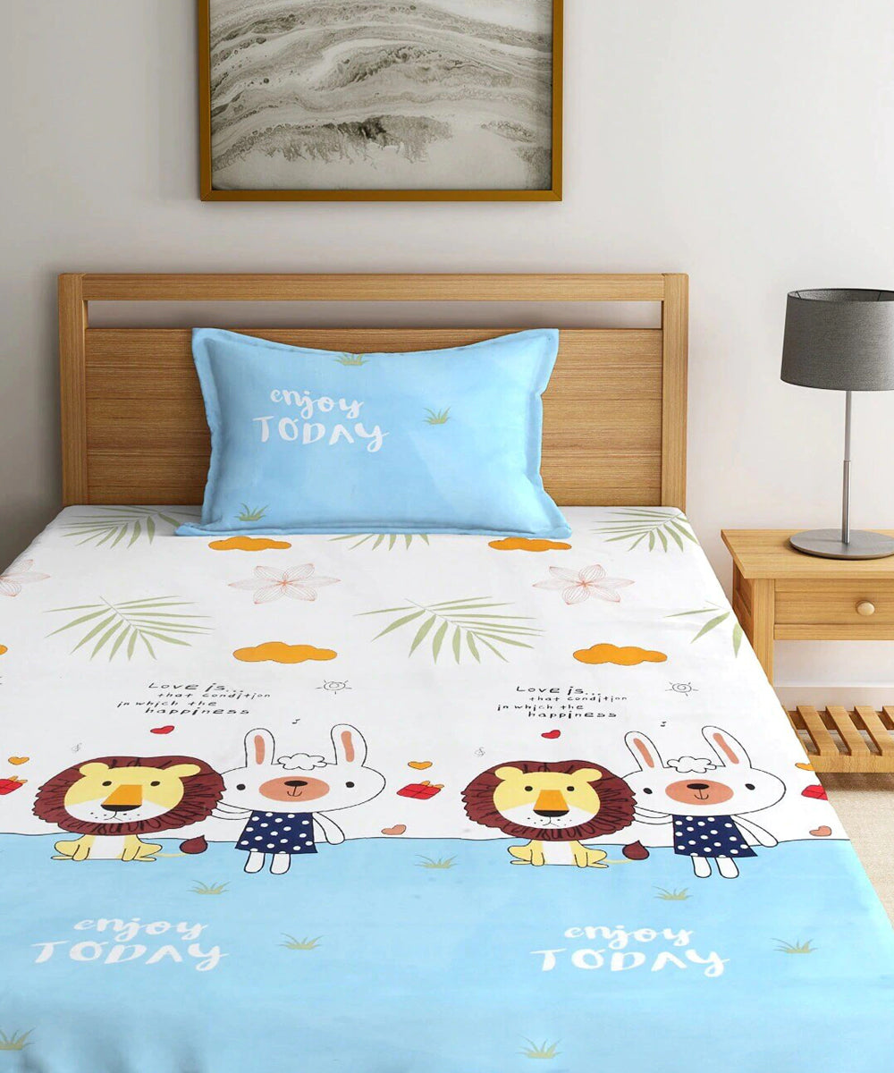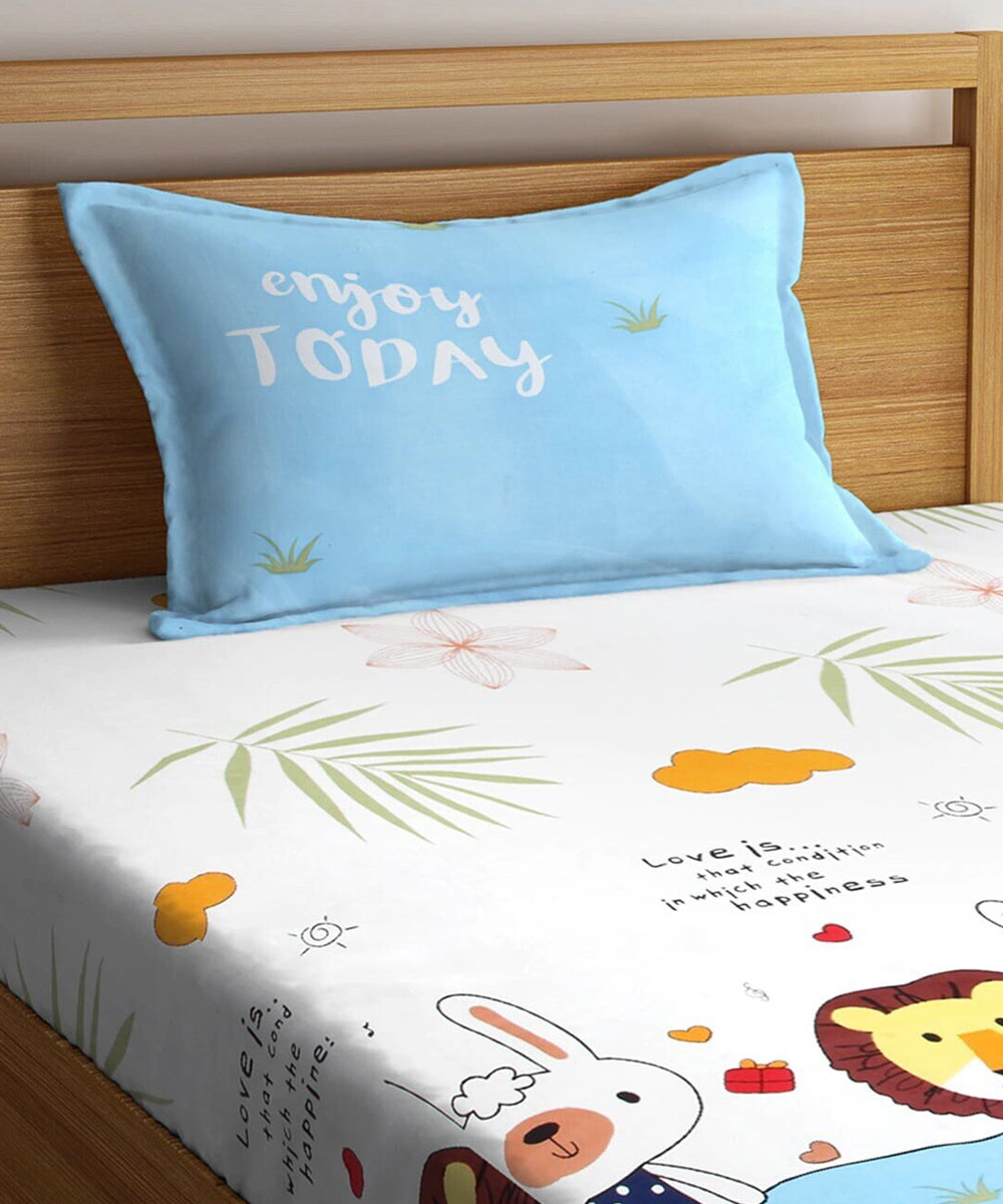 Lion & Bunny Buddies Kids Single Fitted Bedsheet With 1 Pillow Cover