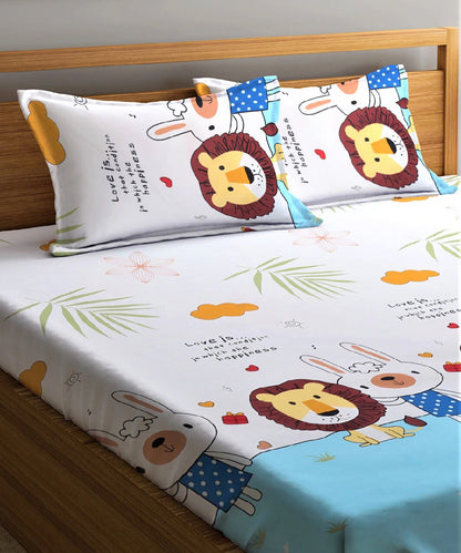 Lion & Bunny Buddies Kids Super King Fitted Bedsheet With 2 Pillow Covers