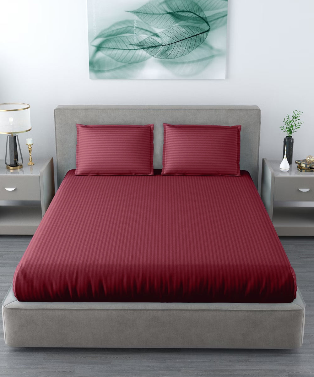 Maroon Satin Stripe King Size Bedsheet With 2 Pillow Covers