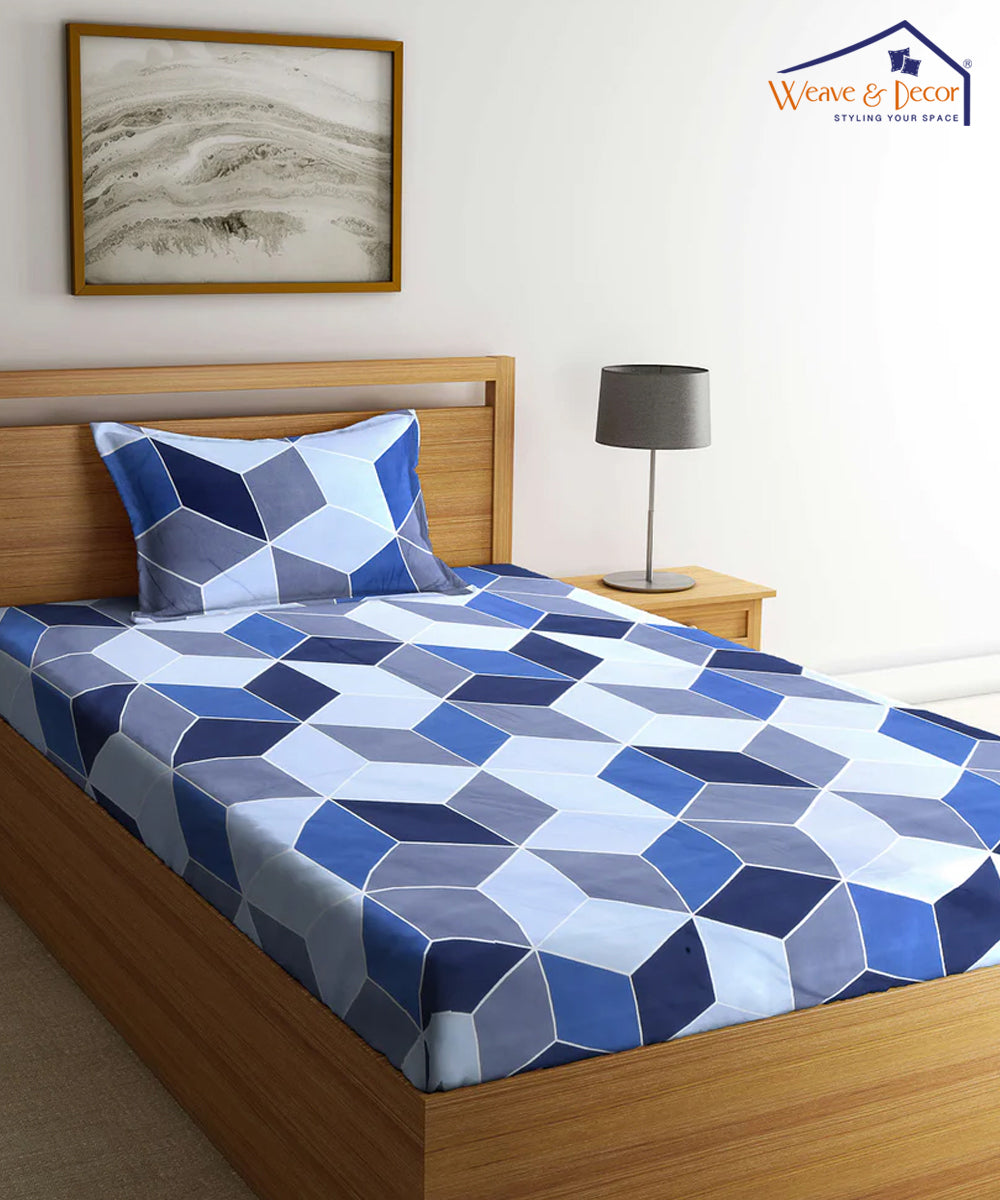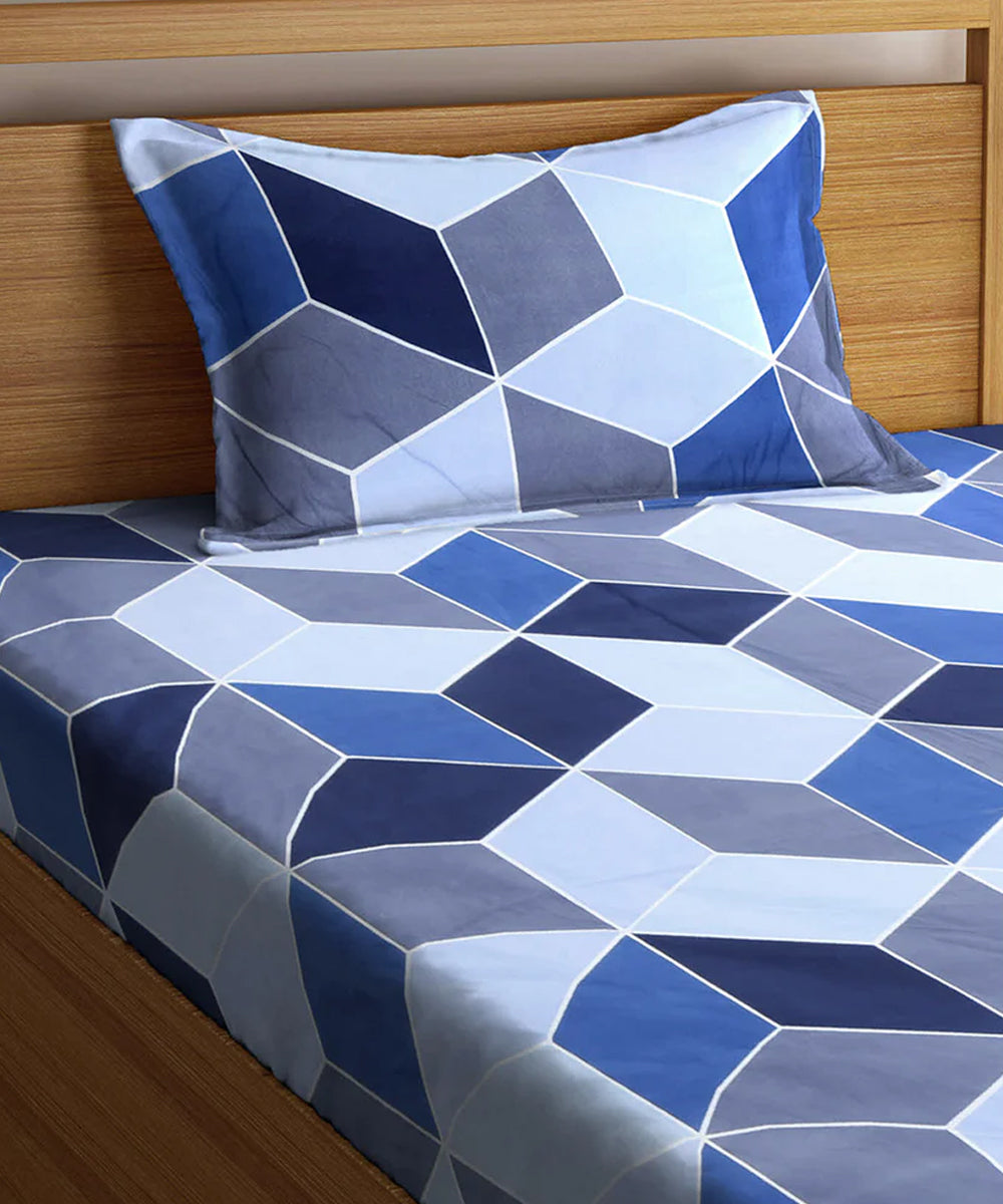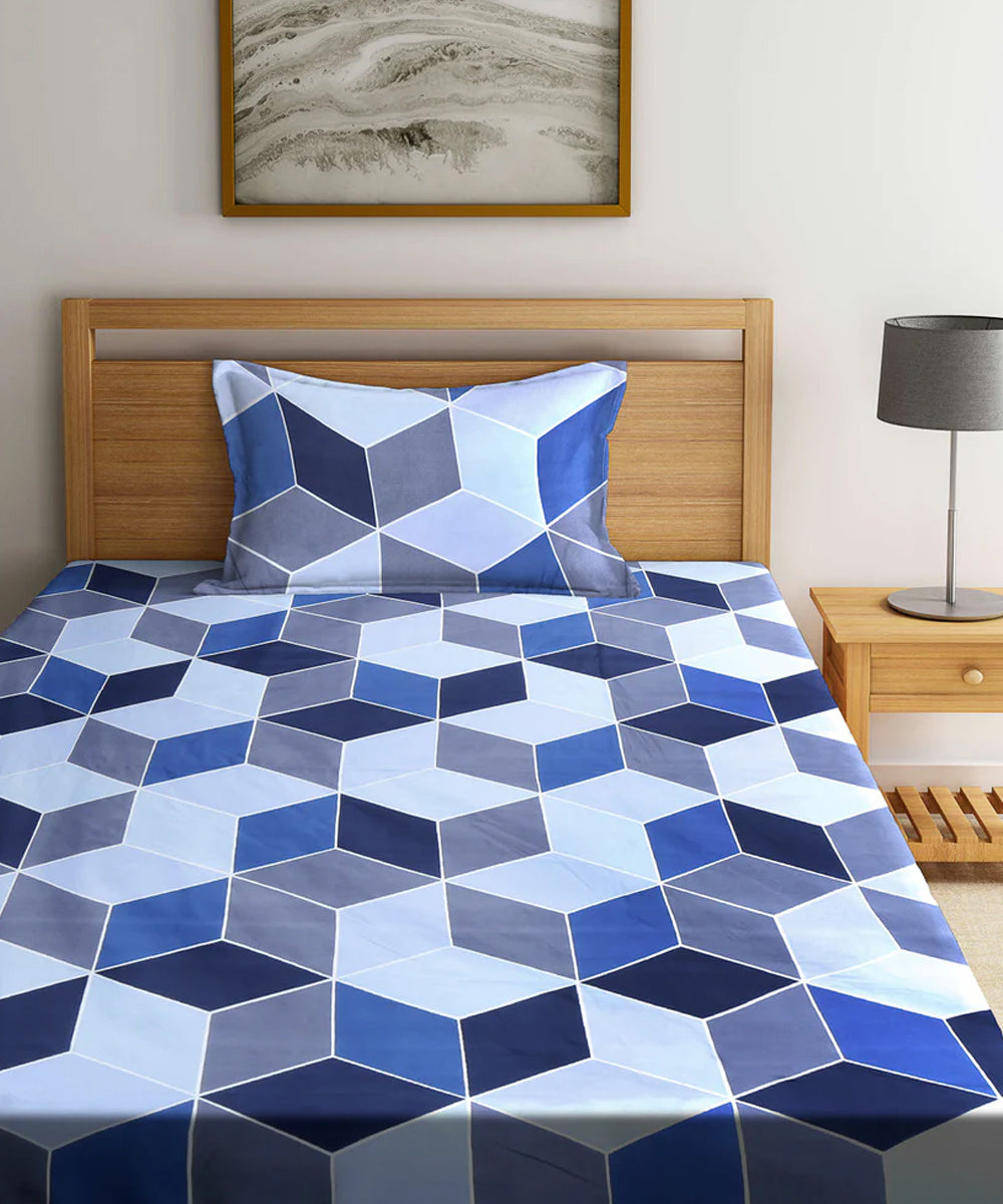 Rhombus Blue Single Bedsheet With 1 Pillow Cover