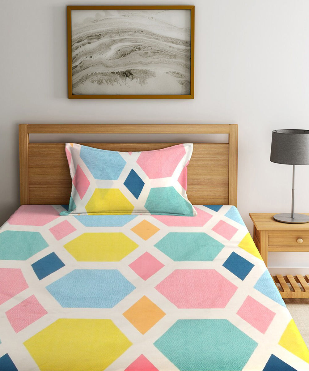 Hexa Geometric Single Bedsheet With 1 Pillow Cover