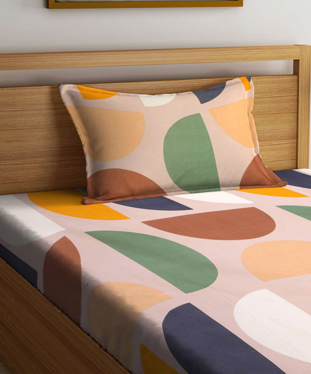 Multi Color Single Bedsheet With 1 Pillow Cover