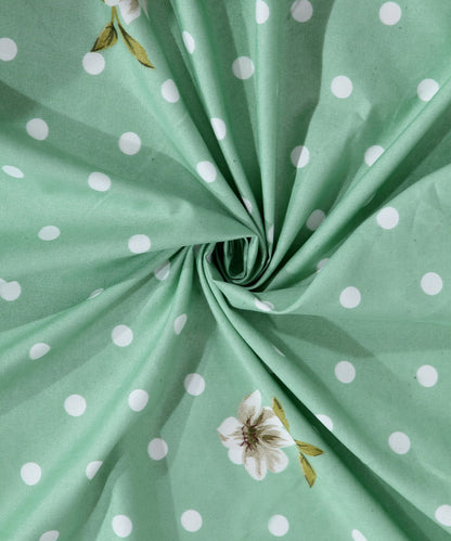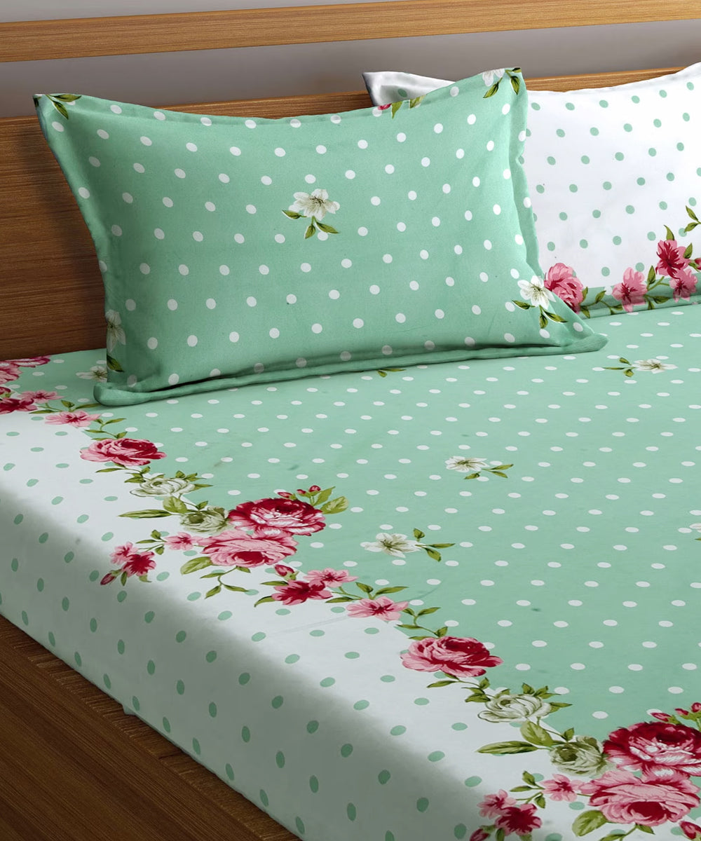 Green & White Floral Flat Double Bedsheet With 2 Pillow Cover