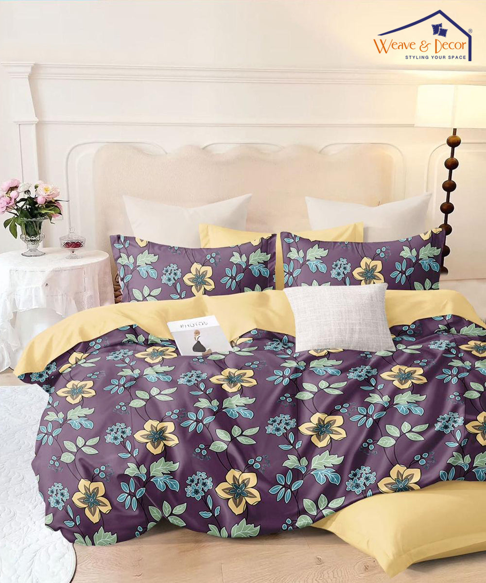 Purple Floral Flat Double Bedsheet With 2 Pillow Covers