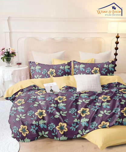 Purple Floral brings a fresh botanical charm with bold blossoms dancing over a rich base. The yellow accents bloom beautifully across the sheet, adding contrast and floral finesse. Designed by Weave & Decor, it’s perfect for creating a serene yet stylish space.