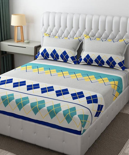 Multi Colour Flat Double Bedsheet With 2 Pillow Covers