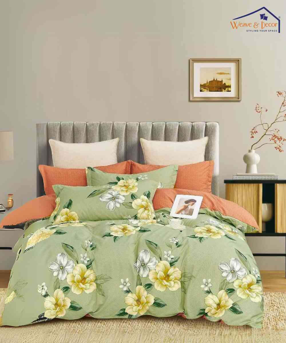An elegant fusion of soothing green hues and soft floral patterns brightens any setting. This bedding breathes freshness while adding sophistication to your modern living space. From Weave & Decor, the Green Whisper set reflects understated luxury and charm.