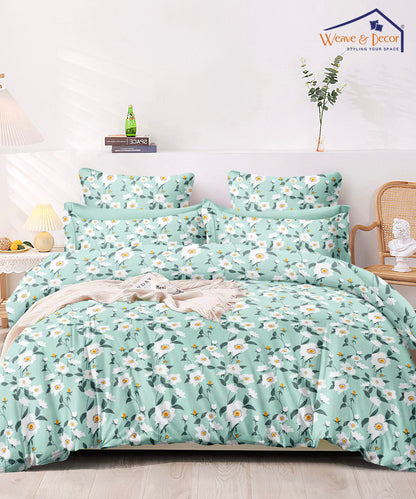 Soft florals in white and yellow rest gently on a leafy green background, giving this bedsheet a clean and calming look. Designed for daily comfort, Weave & Decor introduces Dazzling Blossom as a charming blend of nature and simplicity.