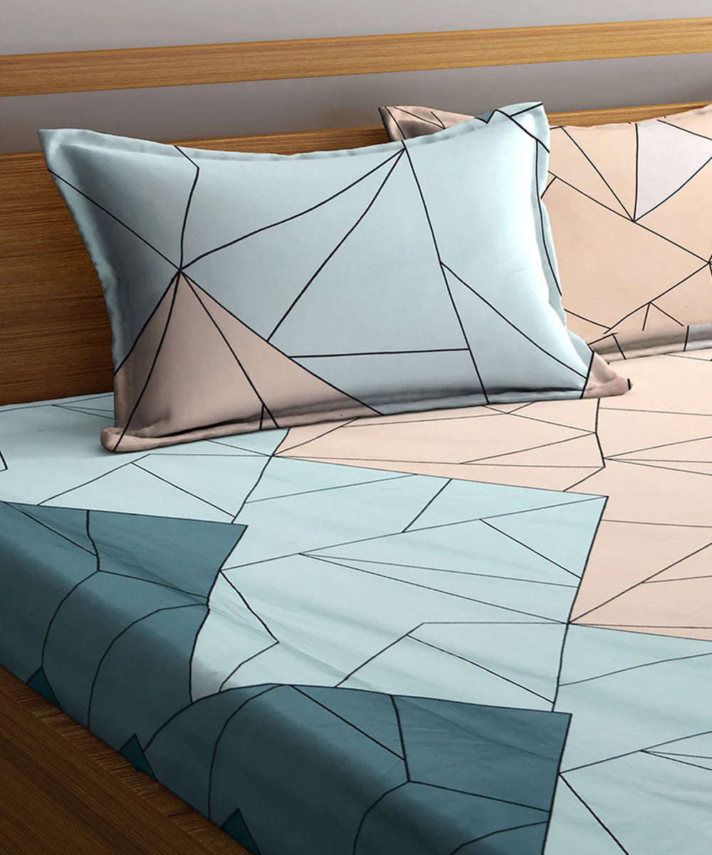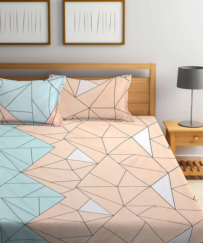 Multi Color Geometric King Fitted Bedsheet With 2 Pillow Covers