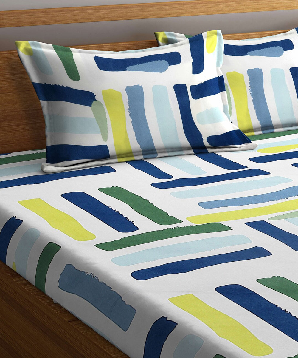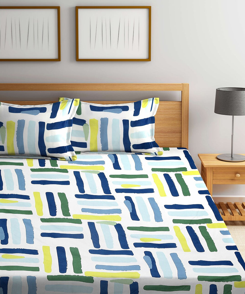 Multi Color Geometric Super King Bedsheet With 2 Pillow Covers