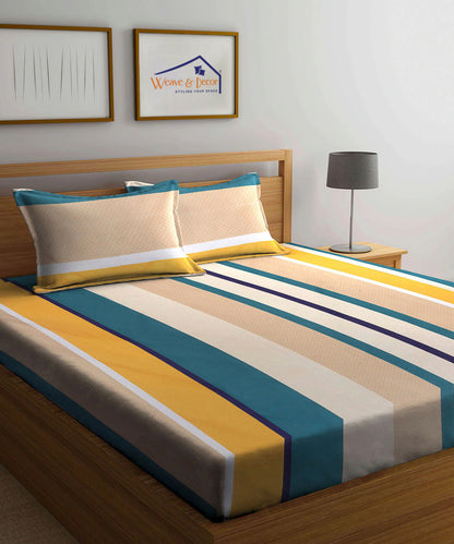 Multi Color King Size Bedsheet With 2 Pillow Covers