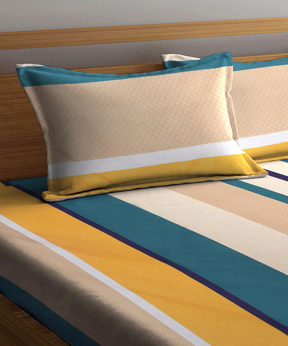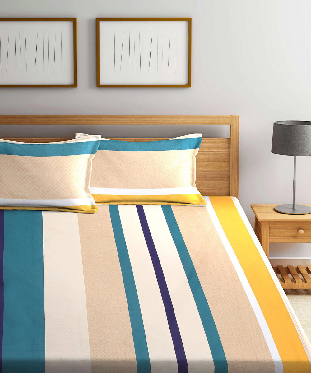 Multi Color Queen Fitted Bedsheet With 2 Pillow Covers