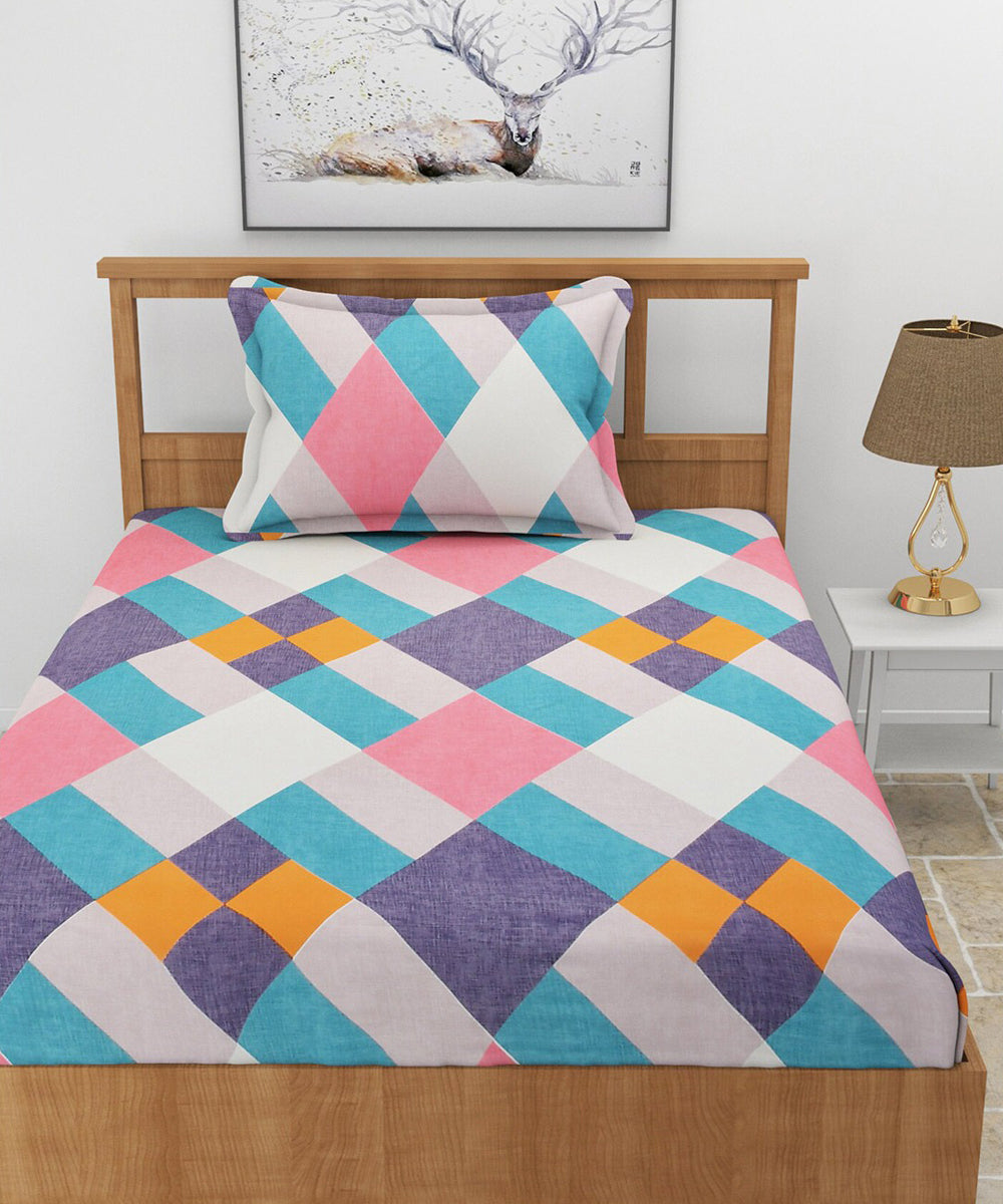 Multicoloured Squares Single Fitted Bedsheet With 1 Pillow Cover
