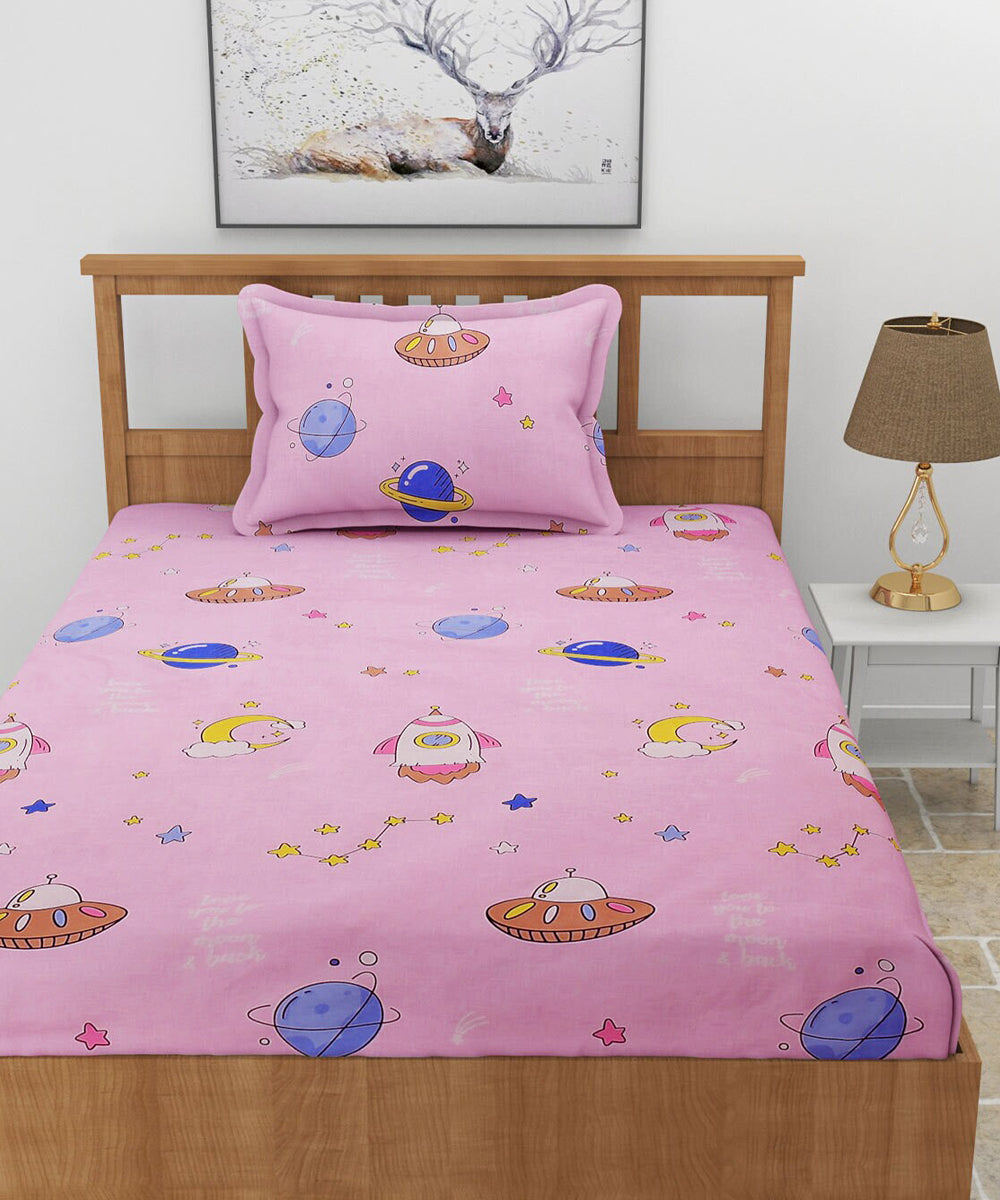 Pink Galactic Dreams Kids Single Bedsheet With 1 Pillow Cover