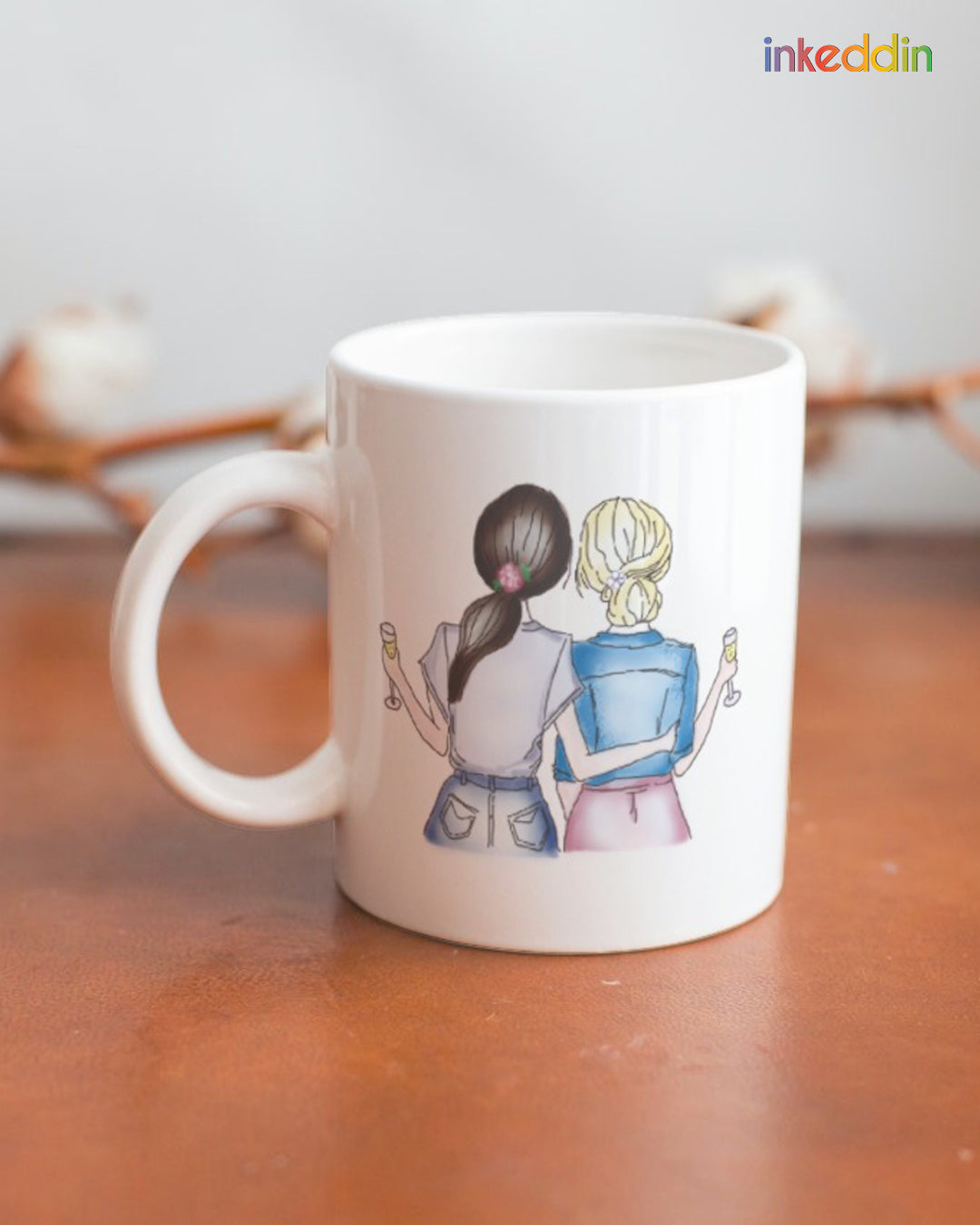 Girlfriends Cheers Printed Ceramic Coffee Mug