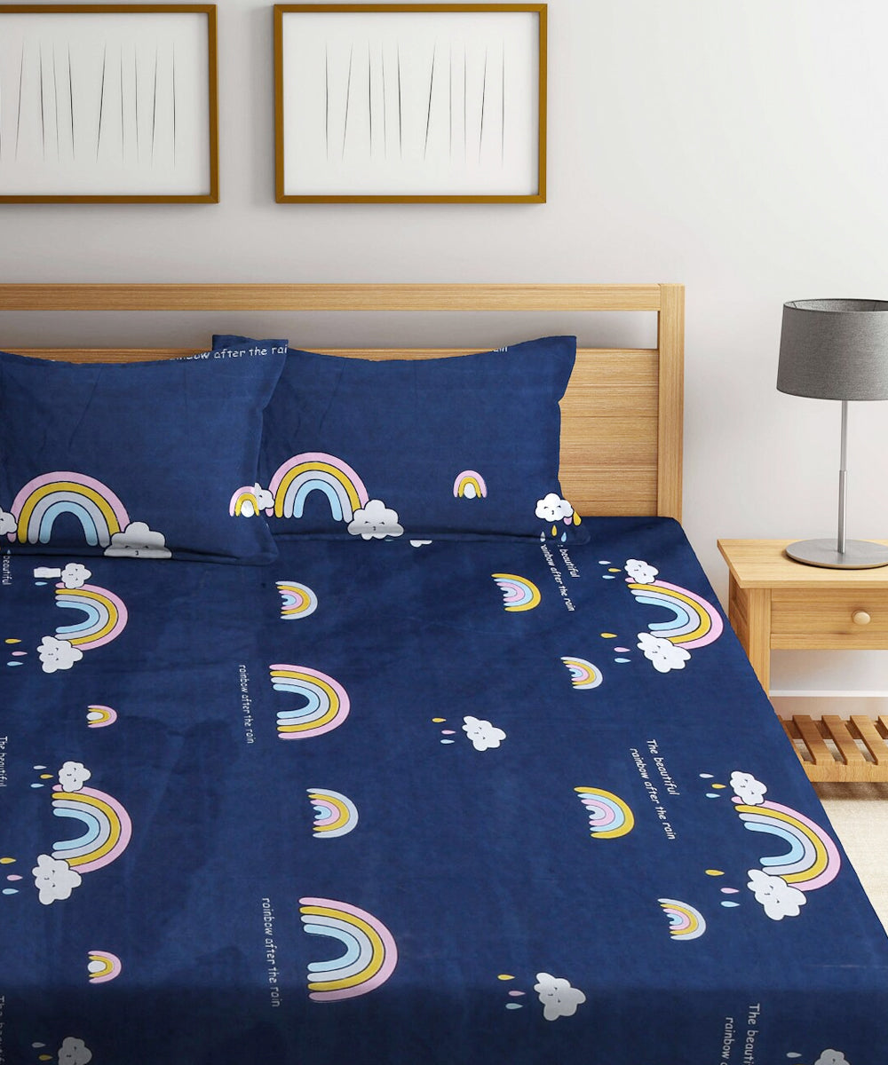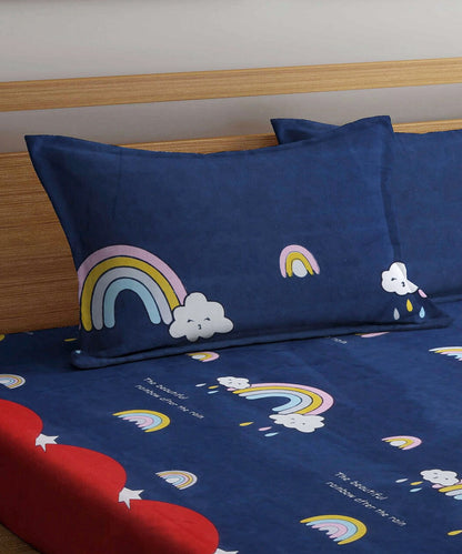 Glow into bedtime with our Rainbow Night Scape Kids bedsheet, loaded with colourful, spirited patterns! These modern designs dance with charm, making every nap a vibrant delight. Playful rainbows shine across bold layouts, fuelling your kid’s imagination.