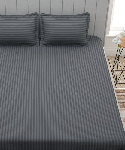 Grey Satin Fitted Bedsheet With Pillow Cover