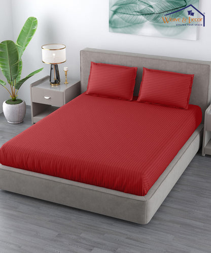 Red Satin Stripe Flat Double Bedsheet With 2 Pillow Covers