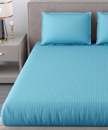 Sky Satin Stripe Flat Double Bedsheet With 2 Pillow Covers