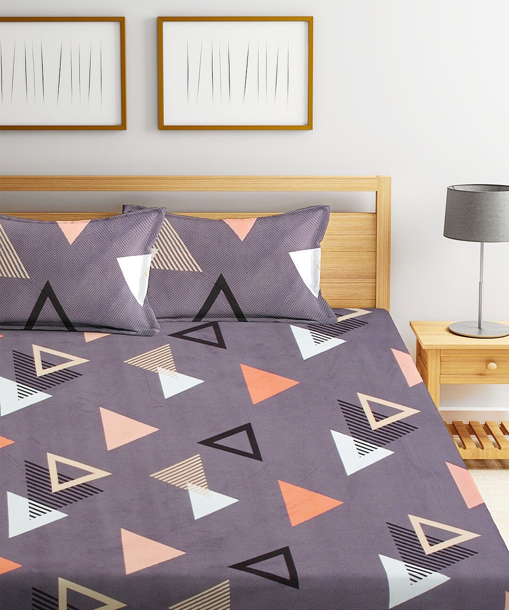 Triangles King Fitted Bedsheet With 2 Pillow Covers