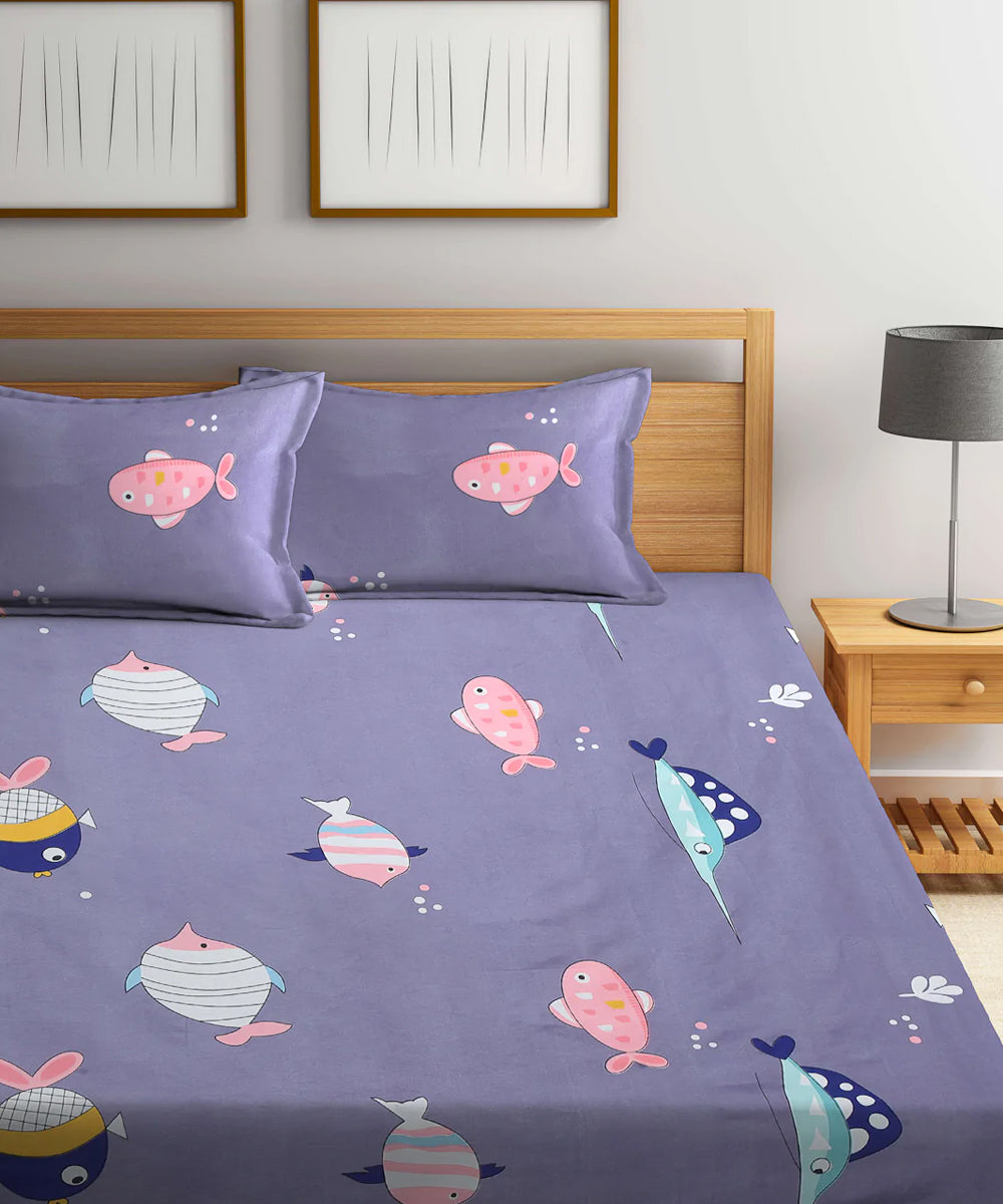 Dive deep into style with our cartoon fish bedsheets Featuring whimsical, colourful fish patterns, these designs offer a modern, bubbly vibe, turning your kid’s room into an ocean escape.