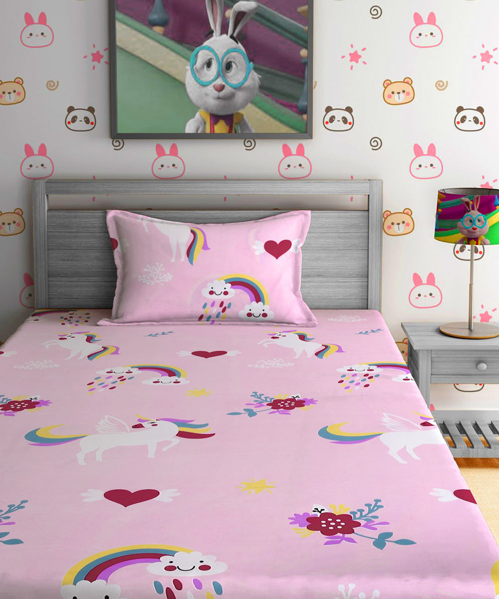 Unicorn Dreams Kids Single Bedsheet With 1 Pillow Cover