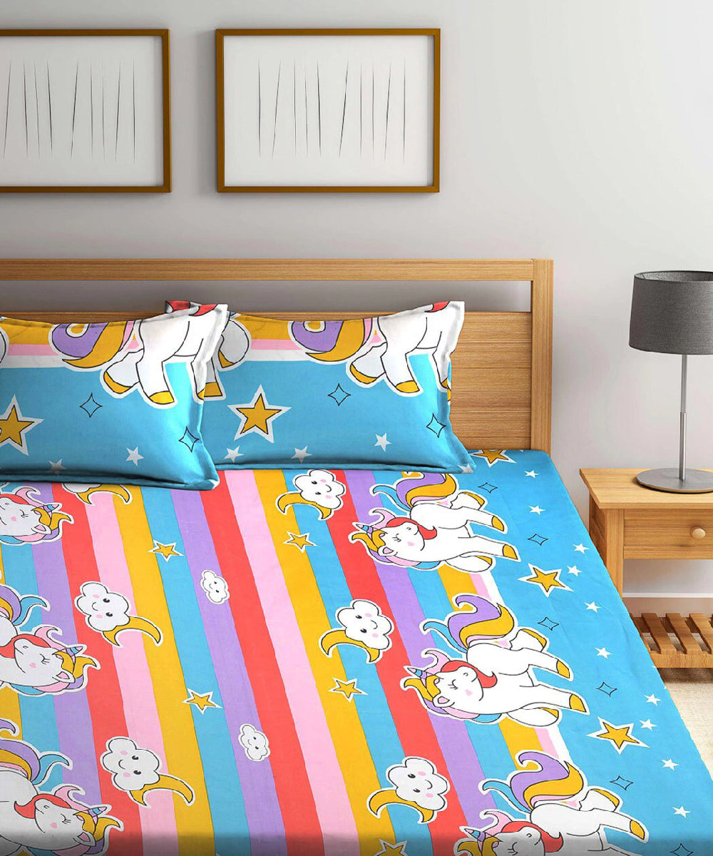 Unicorn Fantasy Print Flat Double Bedsheet with 2 Pillow Covers