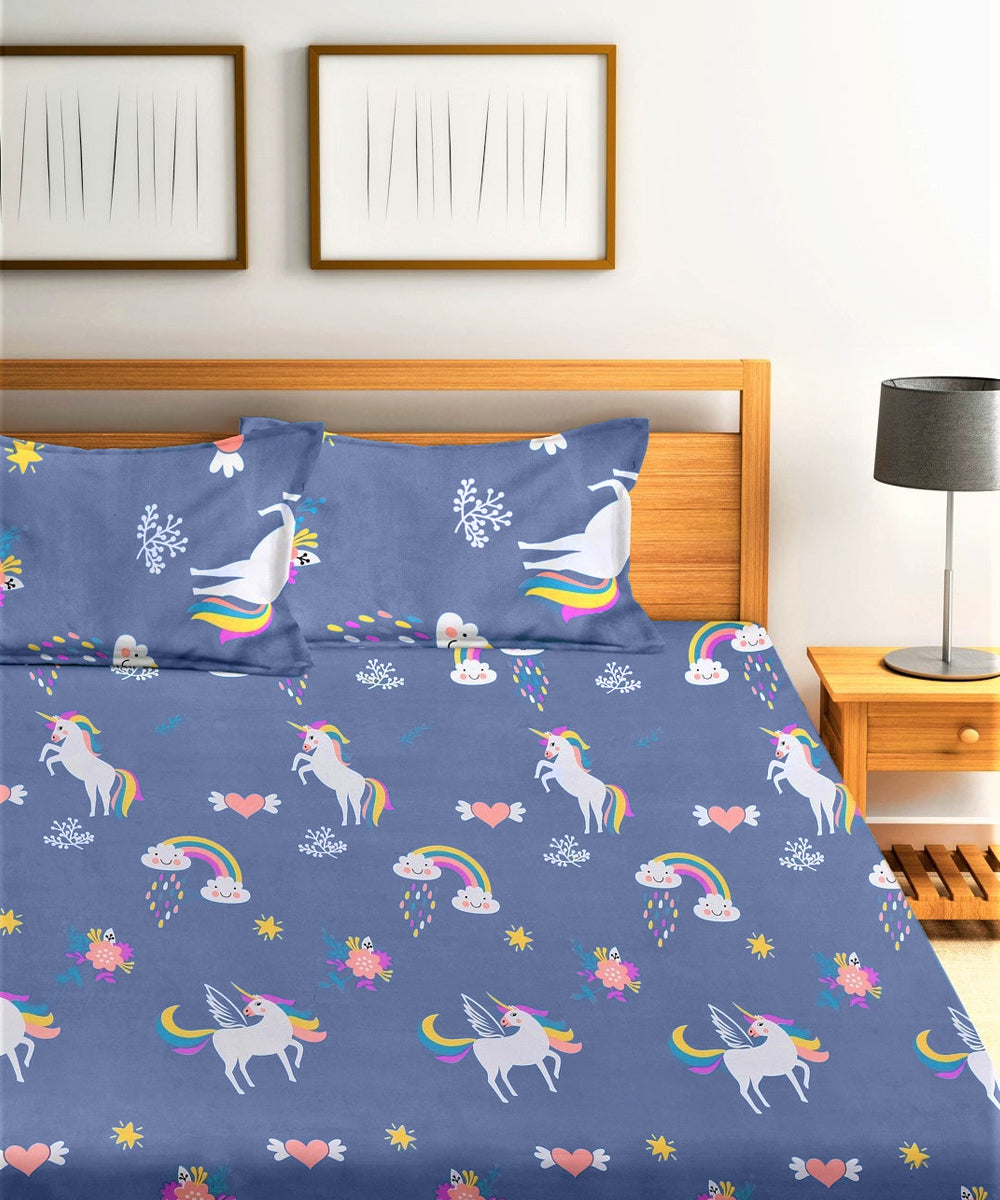 Unicorn Sky Kids Super King Fitted Bedsheet With 2 Pillow Covers