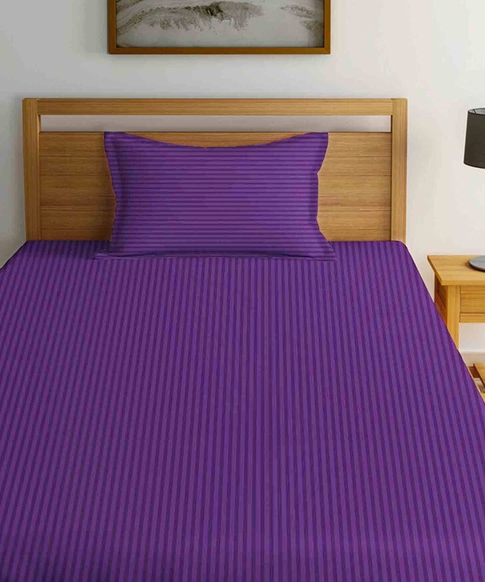 Violet Satin Stripe Single Bedsheet With 1 Pillow Cover