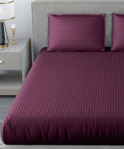 Wine Satin Stripe Flat Double Bedsheet With 2 Pillow Covers