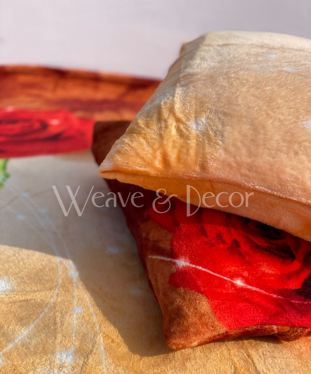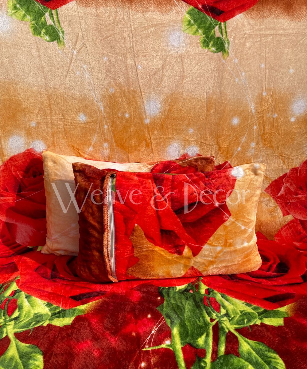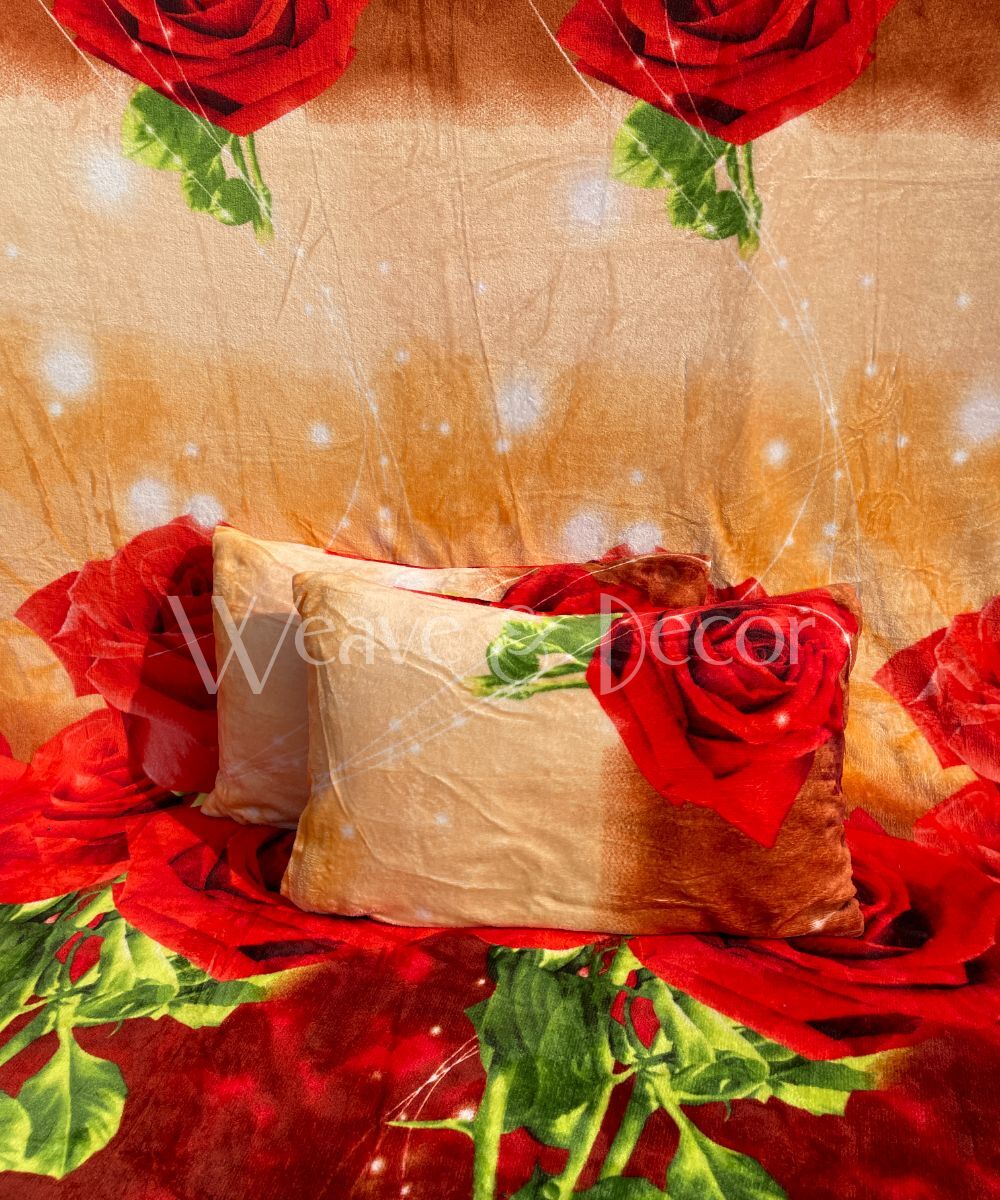 Roses Warm Flannel Double Bedsheet with 2 Pillow Cover