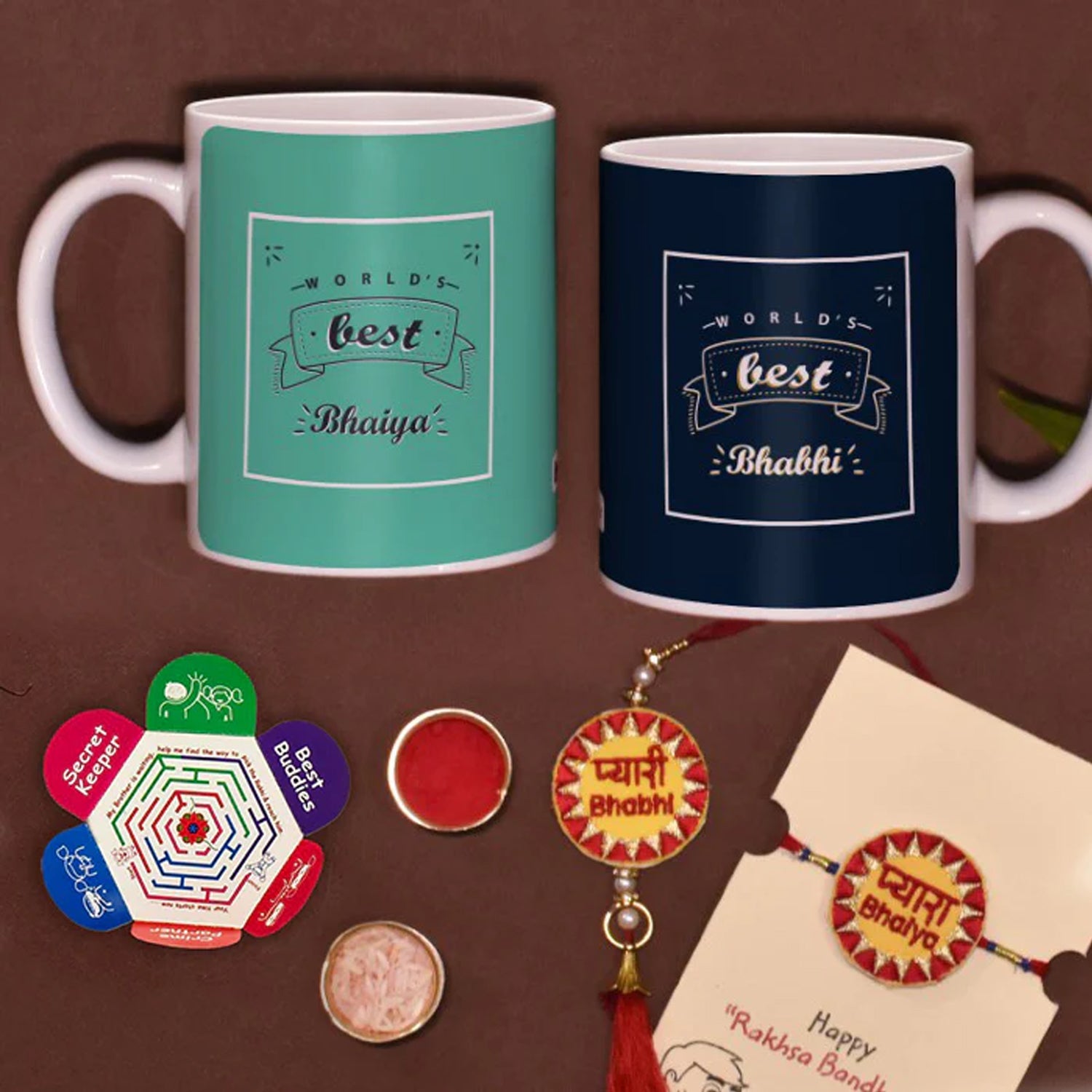 World's Best Bhaiya Bhabhi Mug Set with 2 Rakhi