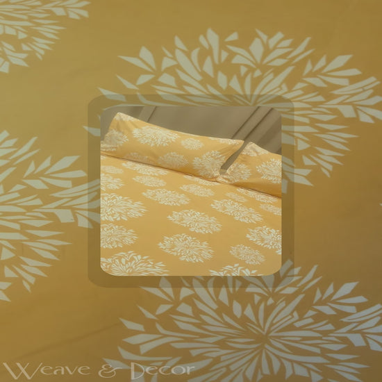 Yellow Dandelion Floral Flat Double Bedsheet With 2 Pillow Covers