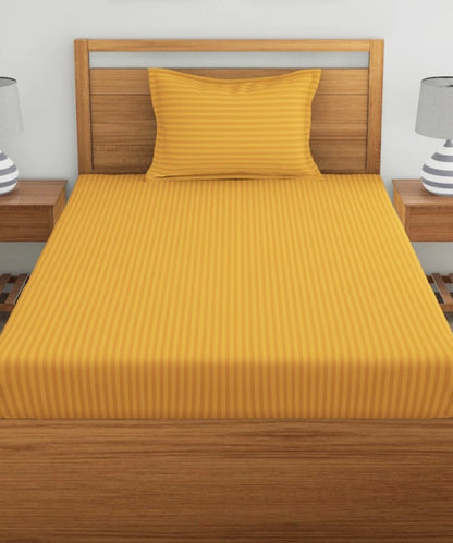 Yellow Single Fitted Bedsheet With 1 Pillow Cover