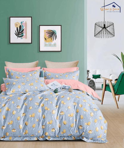 Sleep in a floral embrace with Weave and Decor’s Yellow Whisper flat Bedsheet! Vivid vines sway, as though kissed by sunlight, creating a warm retreat of sunny beauty on your bed. Each blossom casts a bright essence, wrapping your rest in cheer.